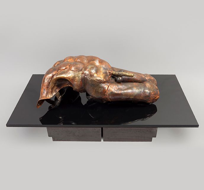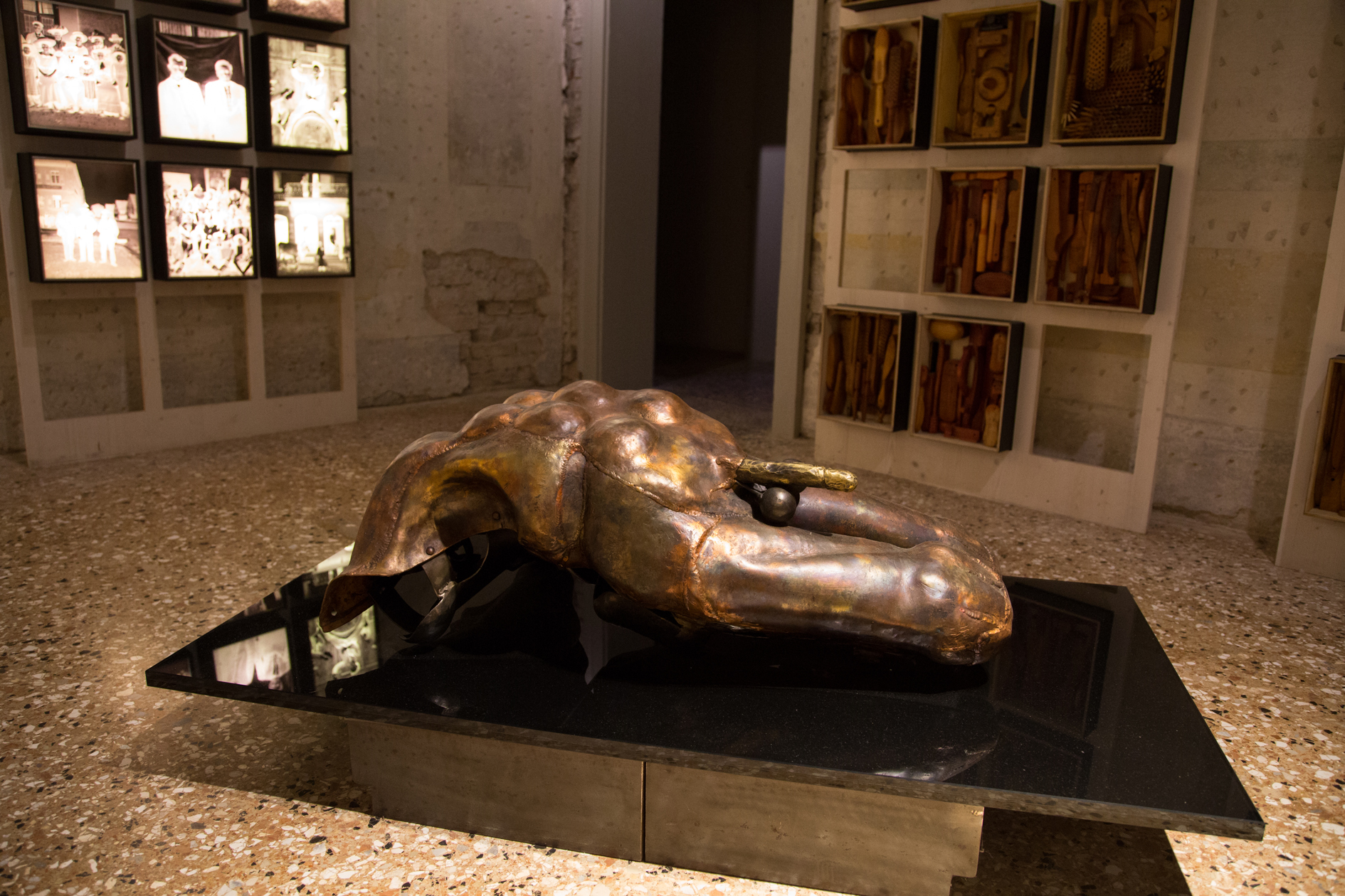 By Annette Pehnt. I embody Don Quixote set in the Black Forest. In the Black Forest there are no windmills and I have no desire to be charging at them. Neither am I the best poet ever seen…. In a historically and culturally sheltered area, I’m often seen as foreign, based on my artistic existence and my South American heritage. This sense of alienation and of being different has become part of my self-perception and is a gift at the same time. It allows me the freedom to examine motives from a fresh perspective and forge them in an unexpected manner. “Black Forest” is a composition with traditional local origins. The installation consists of objects and templates made for the creation of brushes of all kinds. Wießler, a company from Todtnau ceased using their stock of templates made of wood and metal more than 10 Years ago. I managed to purchase some of these 200 year old objects. In each template is the writing of the owner engraved; secret codes which can only be interpreted by the owner and craftsmen themselves and in this regard may be seen as a metaphor for the anonymity of present day industry. However, once translated they explain the identification of the craftsmen with their work and their products. In my opinion, these objects are surprisingly complex and well designed and yet were produced even under circumstances of poverty and icy weather. Archiving and combining the objects with modern ideas bring new perspectives to the table. For instance, the Codices from Todtnau are a prime example of historical preservation. This self-projection carries its own particular beauty which underlines the aesthetic composition of the objects. I have entitled this installation ‘Eros’. The base of Eros is human life in its purest form. However, today the Eros human sheds tears. It’s natural for him to possess tears of disappointment, but in this day and age he cries perpetually. He cries over the influence of commerce, the corset of pornographic templates and the dispossession of the human body by multimedia. The omnipresent marketing machine devours beastlike every human emotion and restricts every individual to their template, treating them as nothing more than goods. So in turn, Eros becomes just a product. The product becomes purchasable. Buying and selling is arbitrary. The remainders are eaten. The installation ‘Eros’ relates to this feast and its damage to the self-perception of the human. The installation ‘Eros’ takes inventory: The template and the beast, its ravaged object and the destructive machine all align. From this operation stems a continuing tale of past efforts to establish self-definition on the one hand – and the loss of erotic humanity on the other. Don Quixote from the Black Forest.
